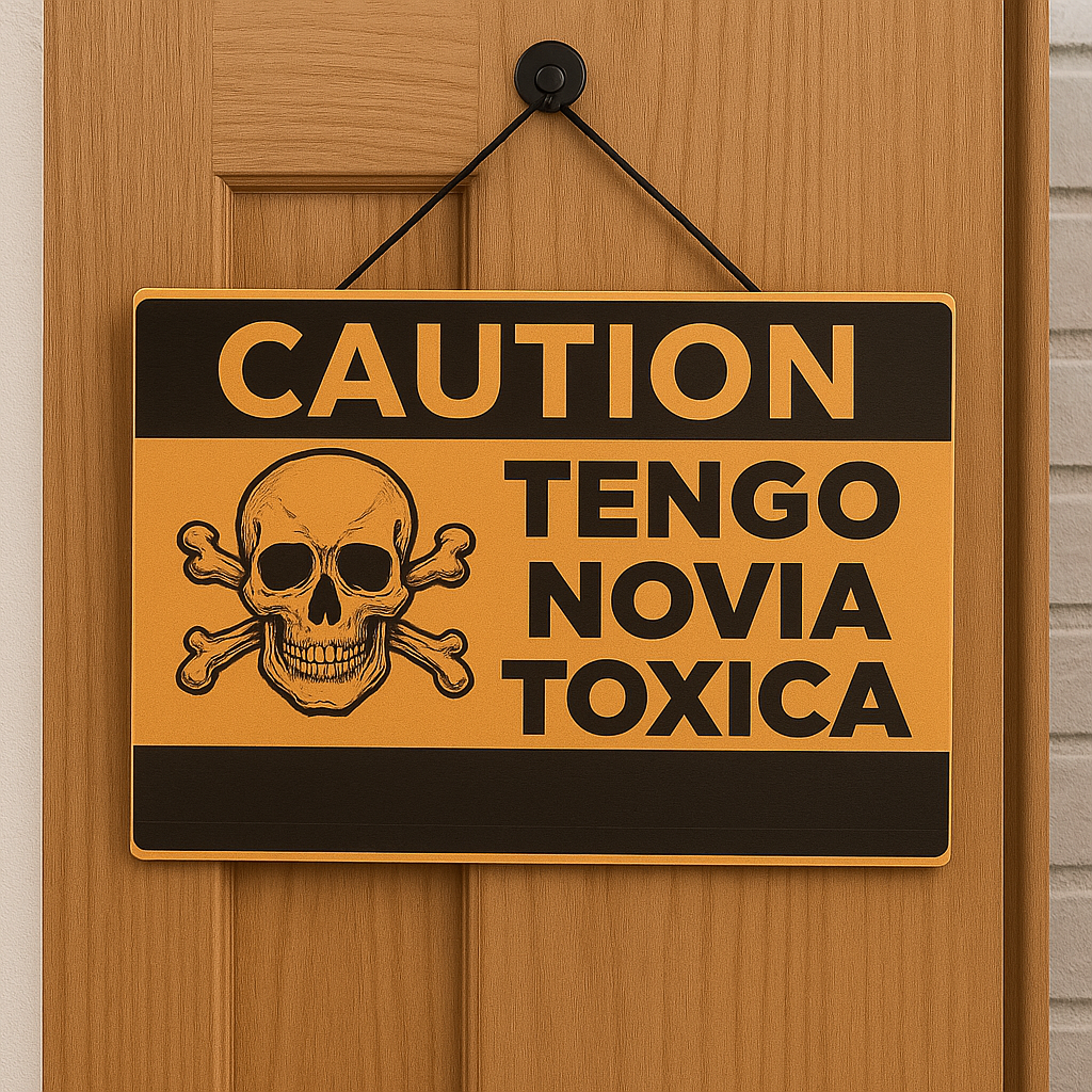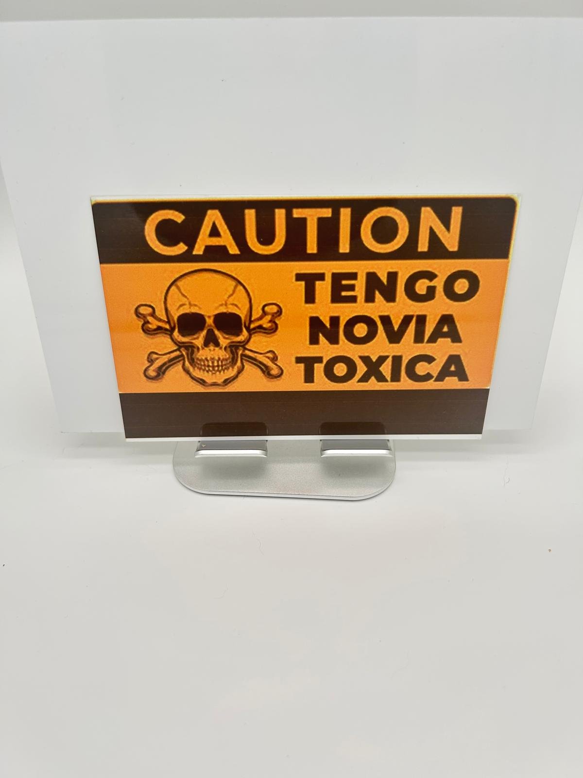 Placa tengo novia toxica, amarillo aluminio 14×10 cm